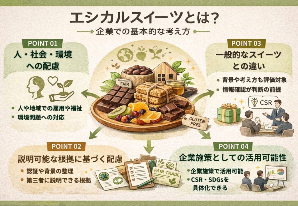 以下は、企業がエシカルスイーツを検討する際に整理しておきたい基本視点です。