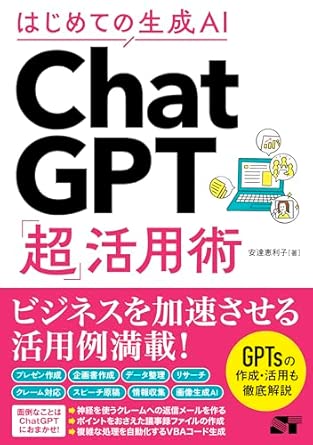 はじめての生成AI ChatGPT「超」活用術』は、ChatGPTを中心とした生成AIの基本機能と実務での活用方法を体系的に解説した入門書です。ChatGPTの概要や料金体系、プロンプトの基本などの基礎知識から、文章作成、ビジネスメール、資料作成、議事録要約、翻訳などの具体的な業務への応用までを段階的に説明しています。